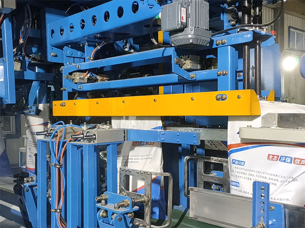 6.當達到設定重量后通過包袋小車達到縫包位置,縫包裝置完成縫包,再次包裝袋到達碼垛輸送線完成這一過程,準備進行下次包裝循環(huán)。