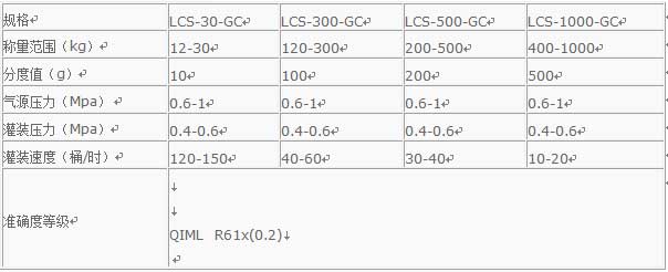 液體灌裝秤LCS技術(shù)參數(shù)
